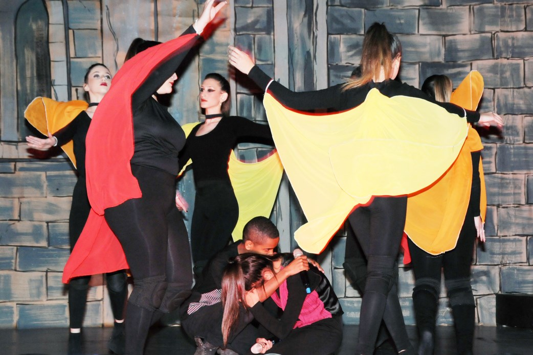 מסכת בביצוע תמלימי כיתות י"א מקרית החינוך אורט קריית ביאלירק ששבו מהמסע לפולין (צילום: נחום סגל)