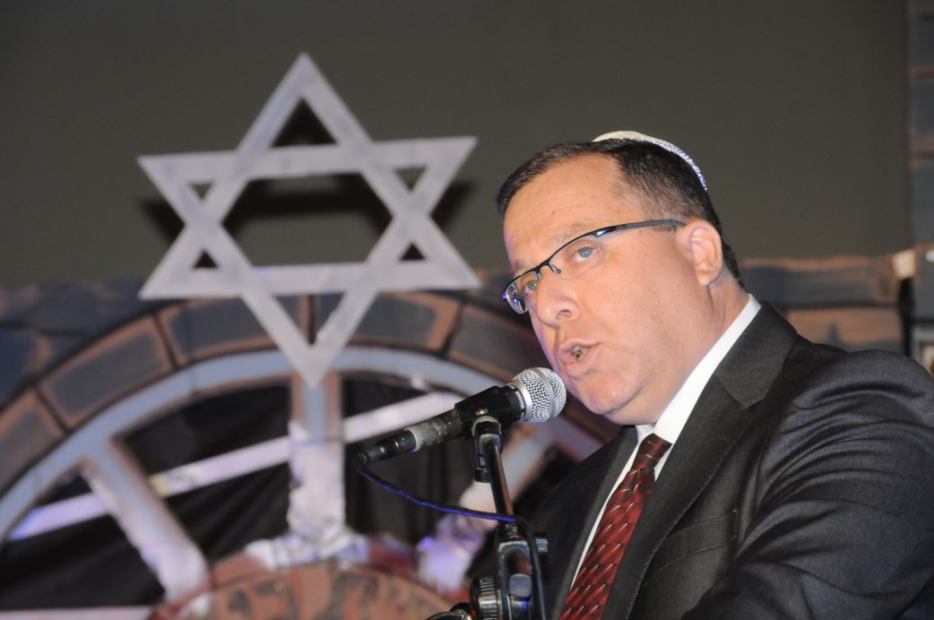 ראש העיר, אלי דוקורסקי נושא דברים בטקס (צילום: נחום סגל)