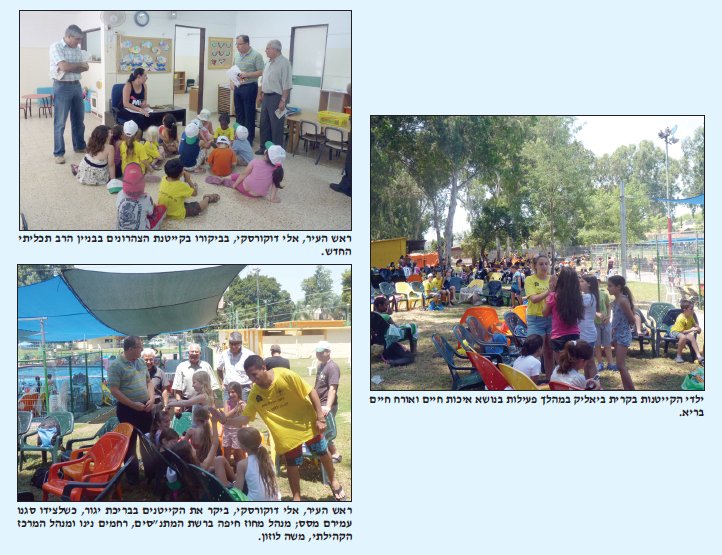 ראש העיר, אלי דוקורסקי, מלווה בסגנו עמירם מסס, ביקר את הקייטנים בגני הילדים ובבריכת