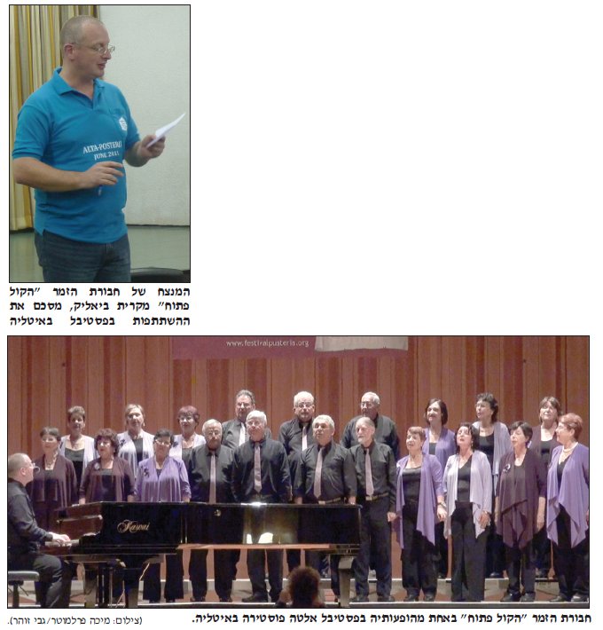 חבורת הזמר "הקול פתוח" מקרית ביאליק חזרה מפסטיבל מקהלות בינלאומי באלטה פוסטריה באיזור הדולומיטים שבצפון
