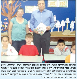 החגים מאחורינו ושנת הלימודים נכנסת למסלול רציף ומסודר. ראש העיר,אלי דוקורסקי, חידש את "ײעת הסיפור" שהוא מעביר זו השנה השלישית ברציפות לכל תלמידי כיתות א' בעיר. ביום שני פגש ראש העיר את תלמידי כיתה א' של המורה מלכה בביה"ס נעורים והקריא להם את הסיפור "הפיל שרצה להיות הכי".